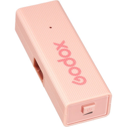 This pink MoveLink Mini UC 2-Person Wireless Microphone System from Godox features a modular output design on the dual-channel receiver with three adapters for expanded connectivity compatible with DSLR cameras, audio recorders, and smartphones with USB-C ports. Included in the system are two clip-on transmitter units, each with an integrated omnidirectional microphone for improved audio pickup. Each component communicates to each other from up to 328' away.
