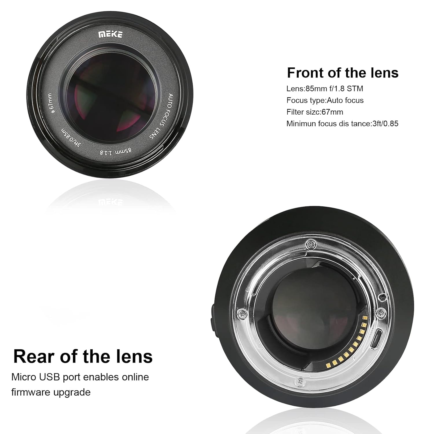 A sophisticated portrait-length prime, this Meike 85mm f/1.8 Full Frame AF Lens is a short-telephoto lens designed for Sony E-mount full-frame mirrorless cameras. The lens offers a f/1.8 maximum aperture for isolating subject matter and working in difficult lighting conditions. Well-suited for close-up photography and portraiture, this autofocus lens provides a 2.8' minimum focusing distance for getting close to your subject, while a rounded nine-blade diaphragm provides a pleasing bokeh quality when shooting at larger apertures.