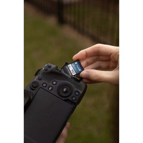 The 256GB UHS-II SDXC Iridium Memory Card from ProGrade Digital features a storage capacity of 256GB and takes advantage of the UHS-II bus to support advanced DSLR and mirrorless functions such as continuous shutter bursts and rapid shooting as well as raw and JPEG captures. This card is also well-suited for video capture, including 4K and Full HD video, and can achieve maximum read speeds of up to 300 MB/s and maximum write speeds of up to 275 MB/s. Thanks to its V90 speed class rating, minimum write speeds are guaranteed not to drop below 90 MB/s.